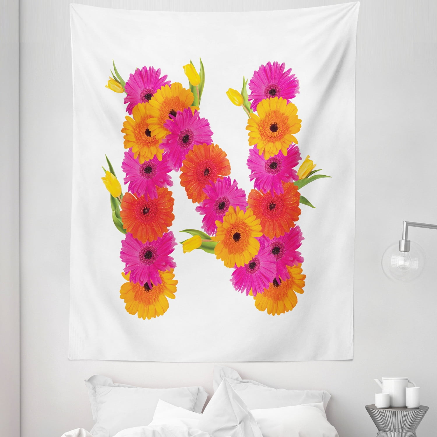 Flower Alphabet Tapestry Gerbera Daisy Garden Of Letter N On Plain Background Print Fabric Wall Hanging Decor For Bedroom Living Room Dorm 5 Sizes Marigold Hot Pink And Green By Ambesonne